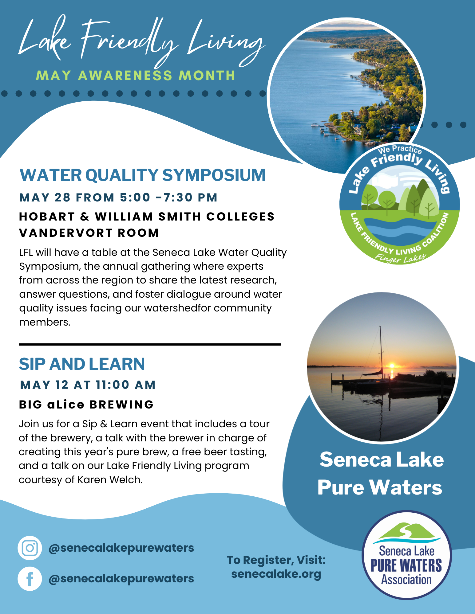LFL will have a table at the Seneca Lake Water Quality Symposium, the annual gathering where experts from across the region share the latest research, answer questions, and foster dialogue around water quality issues facing our watershed for community members.